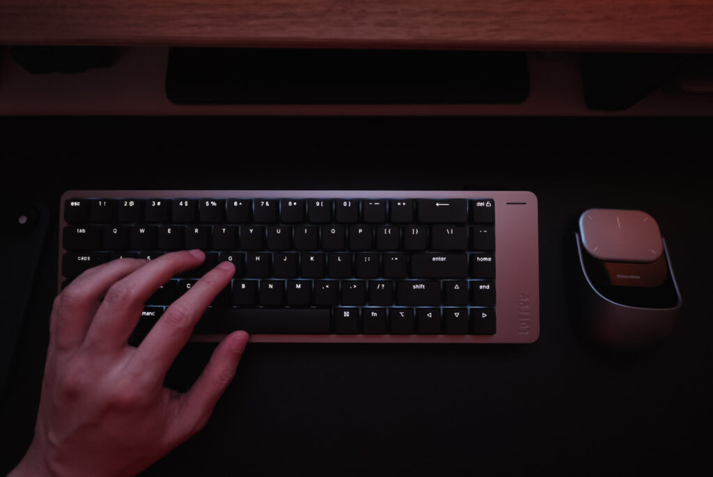 การออกแบบ Ergonomic ช่วยลดความเมื่อยล้าของข้อมือได้ในระดับหนึ่ง แต่สำหรับผมที่มาจาก Apple Magic Keyboard กับ Logitech Mx key ที่แทบจะแบนราบไปกับโต๊ะ Lofree Flow 2 ยังคงต้องปรับตัวอยู่นิดหน่อย แต่ถ้าหากว่าใช้ Keyboard กลุ่ม Keyboard mechanical ก็ไม่มีปัญหาเพราะฐานค่อนข้างมีความสูงอยู่แล้ว
